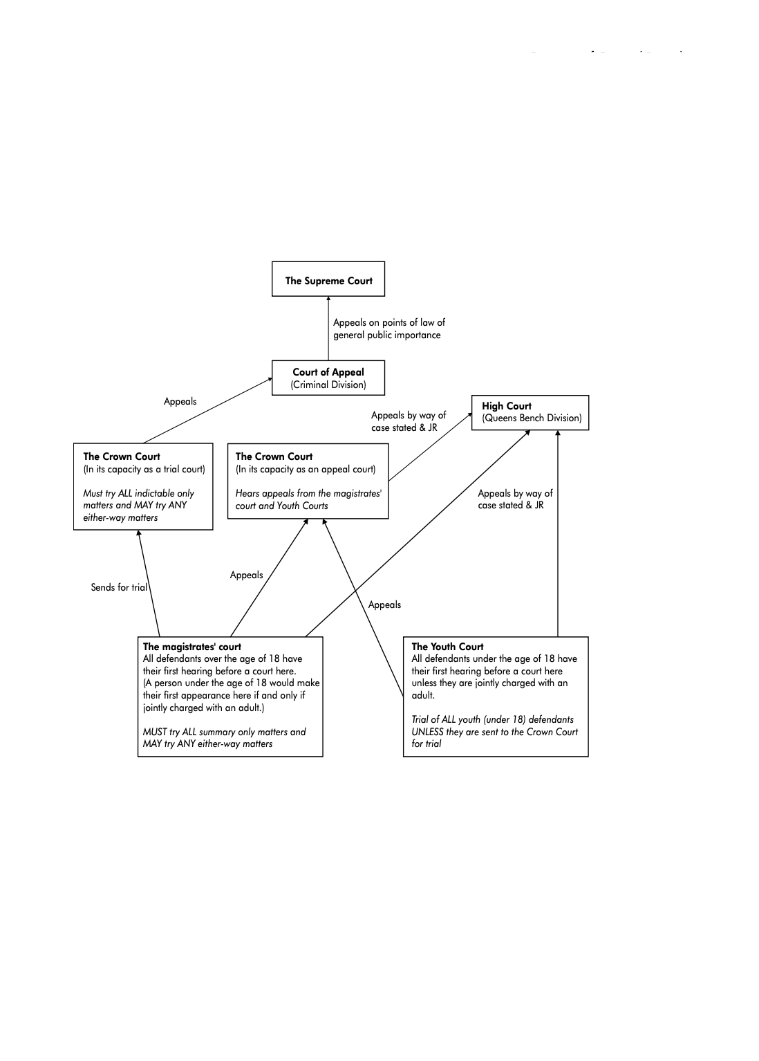 Appeals from the Magistrates’ Court or Youth Court to the Crown Court do not require permission and involve a full rehearing. Further appeals require both permission (leave) and valid grounds, from the Crown Court to the Court of Appeal and then to the Supreme Court.