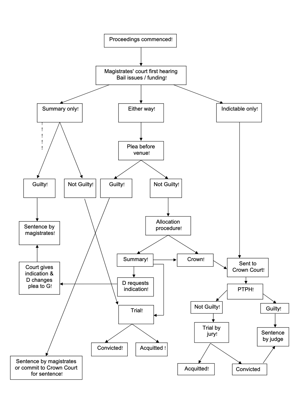 The defendant will first appear at the Magistrates’ Court, where they will be given details of the allegation and asked to indicate a plea.